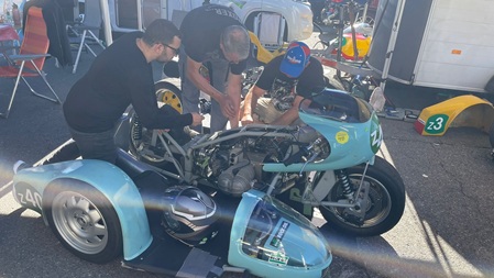 Klassik GP Schotten 2019Das Gespann ist auseinander. Reifen werden gewechselt, das Beiwagenrad soll verbreitert werden, der Lenker 10 cm nach vorn. Ob wir das bis zur Einstellfahrt im März in Hockenheim schaffen ist noch nicht klar.