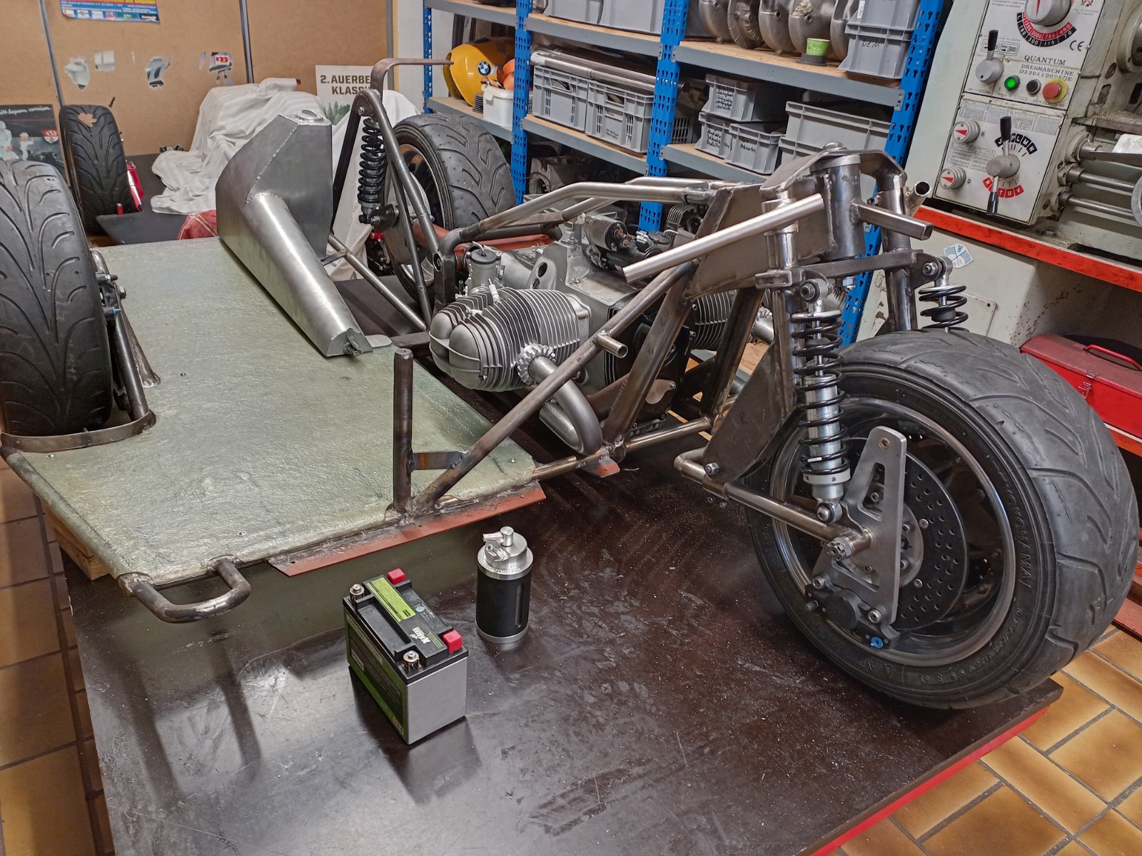 Nach 6 Saisons in der silbernen Z3 / Q3 wurde mein schneller 1000 er überholt. Um in den engen z 3 Hallerrahmen zu passen, habe ich den Räderkastendeckel abgefräst.