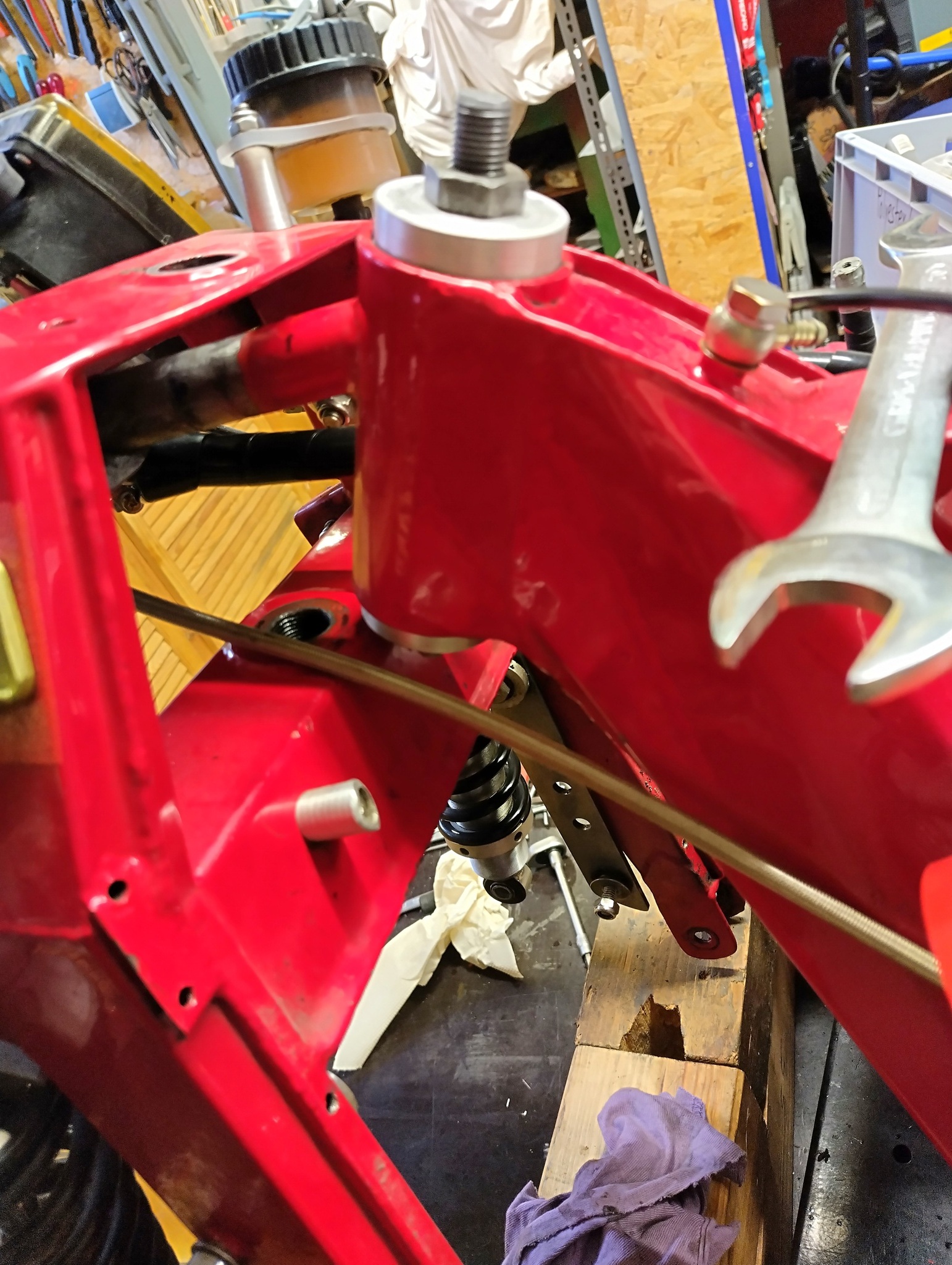 Febr.25 die z 3 ist für die Saison 25 startklar. Das habe ich alles gemacht: aussermittig gelagerte Buchsen für die geschobene V.R.Schwinge gedreht. Der Nachlauf kann damit weitere 2 mm verstellt werden. Steuerkopflager und Bremsbeläge gewechselt. Steuergerät der Zündung nach vorn versetzt, dabei einen Kabelbruch gefunden. Den Achsantrieb auf 33/11 gewechselt und dabei Zahnausbrüche am bisherigen 32/11 gefunden.
