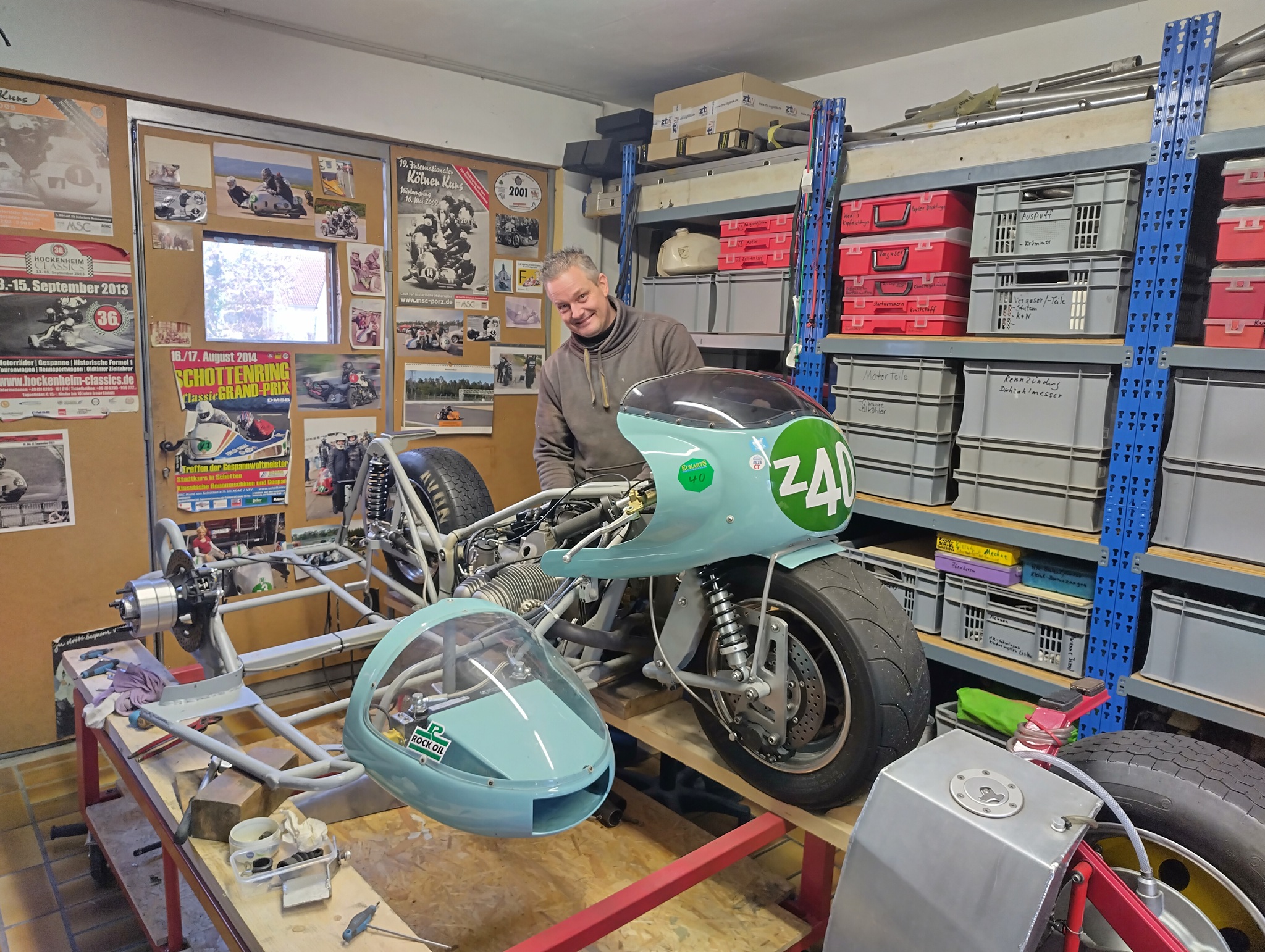 Febr. 25, die z 40 ist fast startbereit. Die weichen Bremsbeläge für hinten und Seitenwagenrad sind noch nicht da.