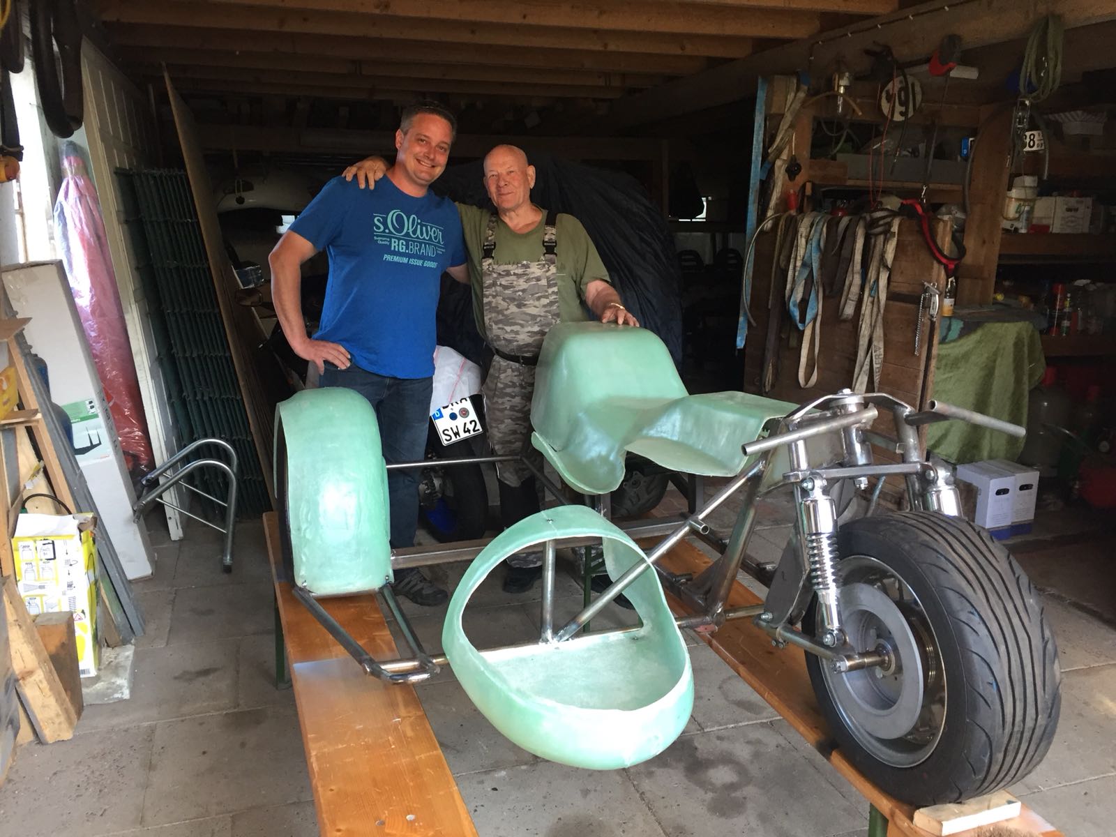 Jan mit Schorsch Wenel bei der Abholung des Fahrwerks