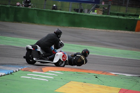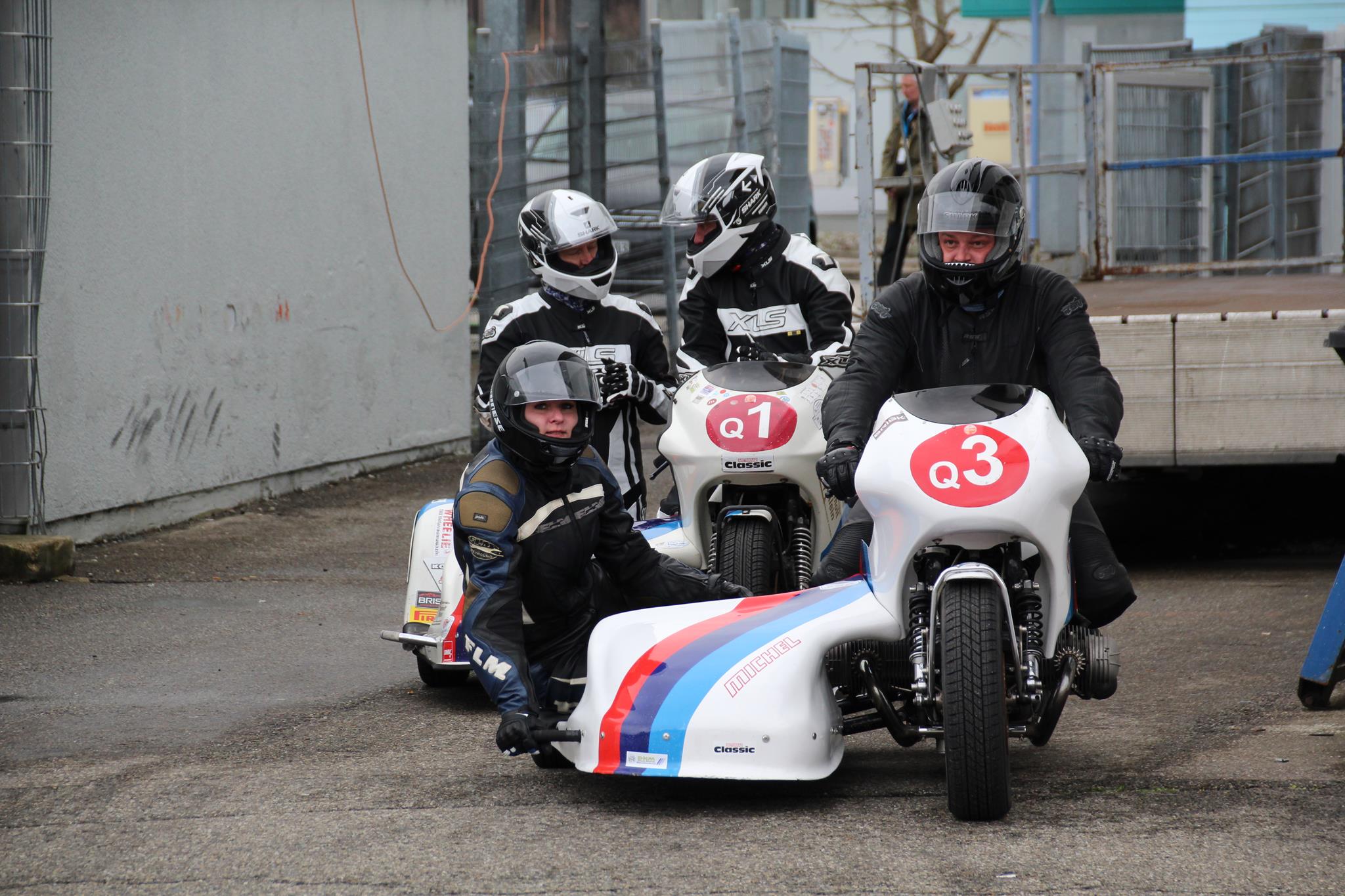 Trotz schlechtem Wetter ging Q3 an den Start. Immerhin mussten die im Winter durchgeführten technischen Optimierungen am Gespann getestet und noch viel wichtiger, die ersten gemeinsamen Runden mit der neuen Beifahrerin absolviert werden. Dafür das Susanne noch nie in einem Gespann mitgefahren ist, erst recht nicht im Rennmodus, hat Sie sich äußerst tapfer geschlagen und viel Mut und Talent gezeigt. Beim ersten Lauf um 10 Uhr im strömenden Regen haben wir nur zugeschaut. Die Läufe 2,3 und 4 haben wir uns nicht nehmen lassen und hatten super viel Spaß dabei! Technisch war ebenfalls alles gut, keine Ausfälle oder Defekte. Die vielen Samstage in der Garage waren es wert!