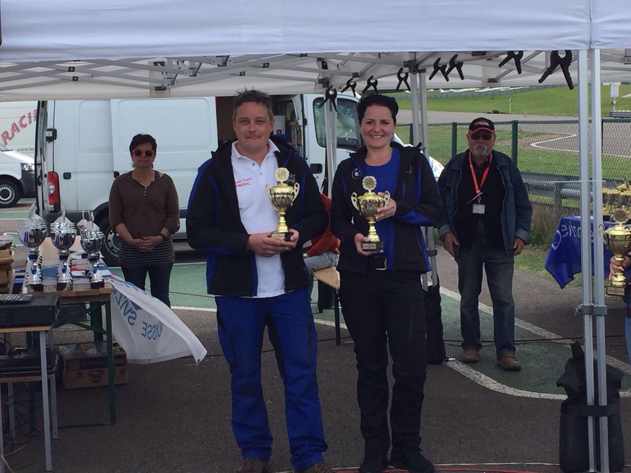 Ab 2017 bin ich mit meiner neuen Beifahrerin, Susanne Peschel aus Ober-Olm, unterwegs. Susanne, vielen Dank für Dein Vertrauen und Mut in unserer ersten und auch gleich erfolgreichen Saison. Auf dem Foto mit unserem ersten Pokal für den 3´ten Platz in Colmar Berg.